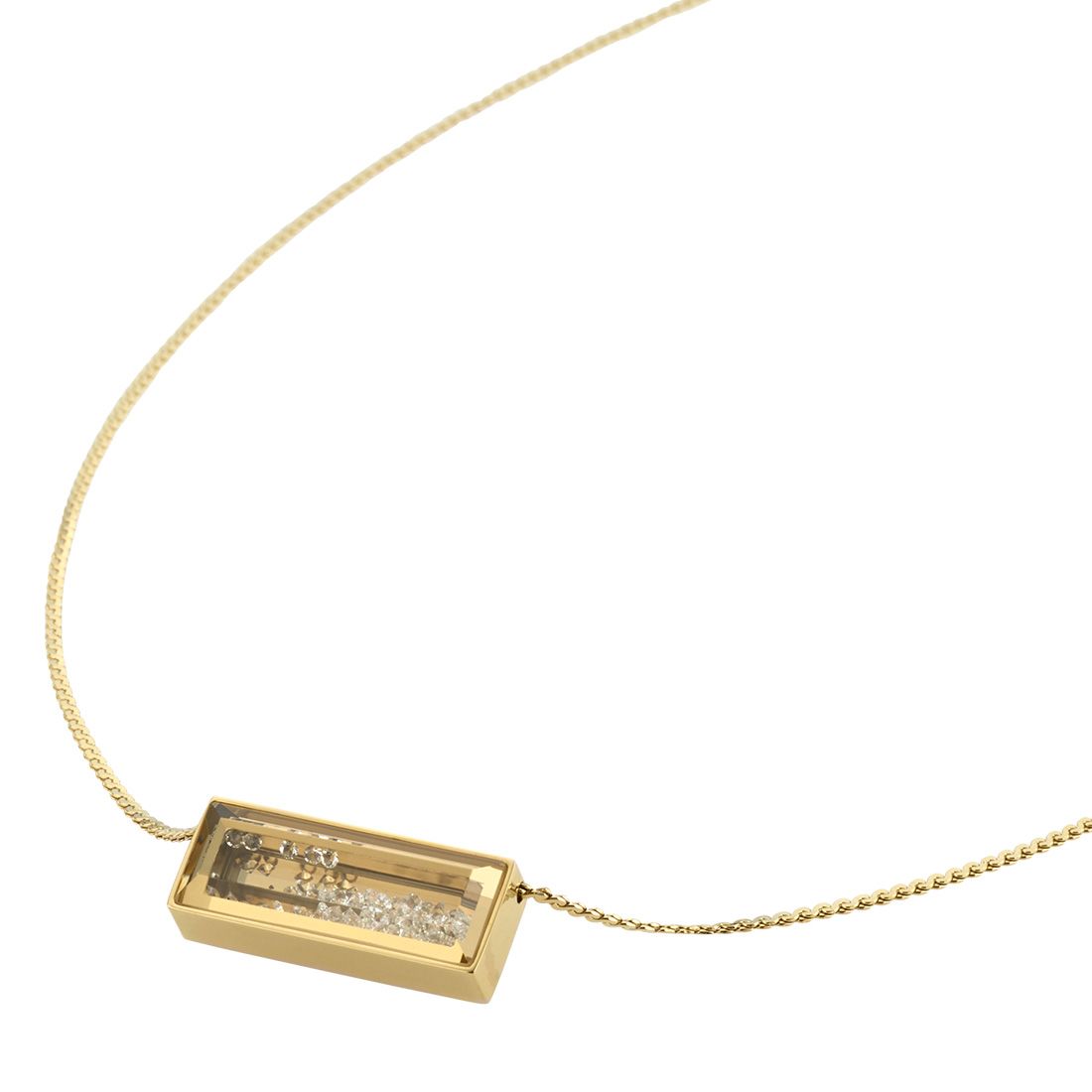 The STORM Bazelle Necklace is an elegant piece with an elevated cut glass pendant containing individual floating crystals. This glamorous sparkling pendant comes on a 21 karat gold plated steel chain. The Bazelle Necklace also has 3 extension hoops enabling you to easily adjust the length. Matching bracelet also available.