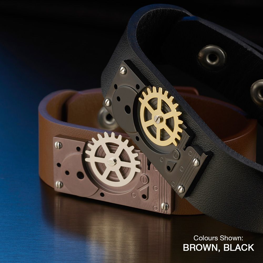 The STORM Coglow is a unique and trendy leather cuff bracelet with intricate cog detailing. Made from genuine leather and brown ion plated brushed stainless steel. Matching pendant available.