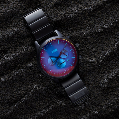 The STORM Crusader is a classic chronograph watch with a modern twist. Photochromic glass enables the stunning graduated dial to change through a range of intense colours. This technique stems from STORM's lazer glass technology. Crusader features a signature STORM band made from brushed stainless steel. It is water resistant to 50m and has a date feature.