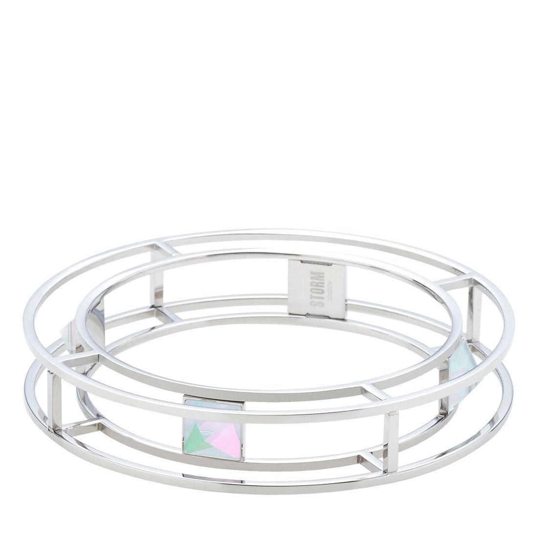 The unique STORM Gemza bangle is made from highly polished stainless steel with lazer glass pyramid stones. Available in purple/rose gold, blue/rose gold and ice/silver.