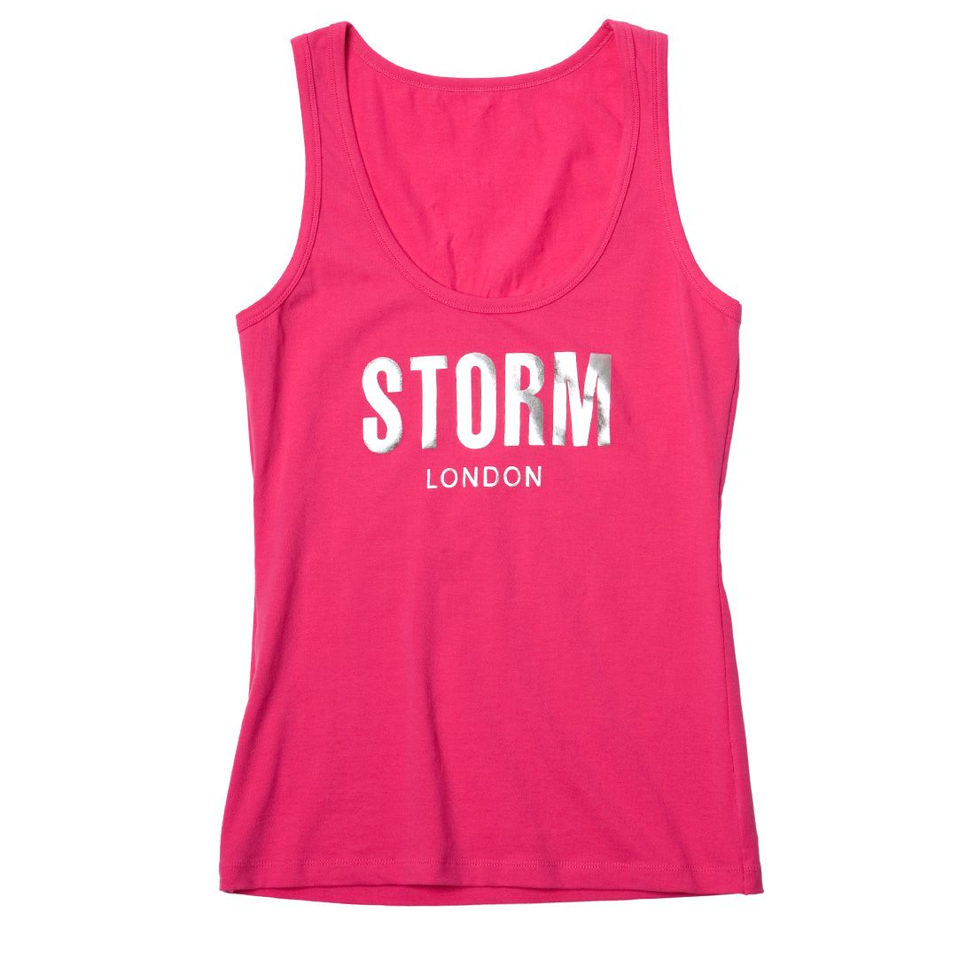Ladies standalone vest tops are available in pink and grey marl with foil print STORM logo. Made from 95% cotton/5% elastane.