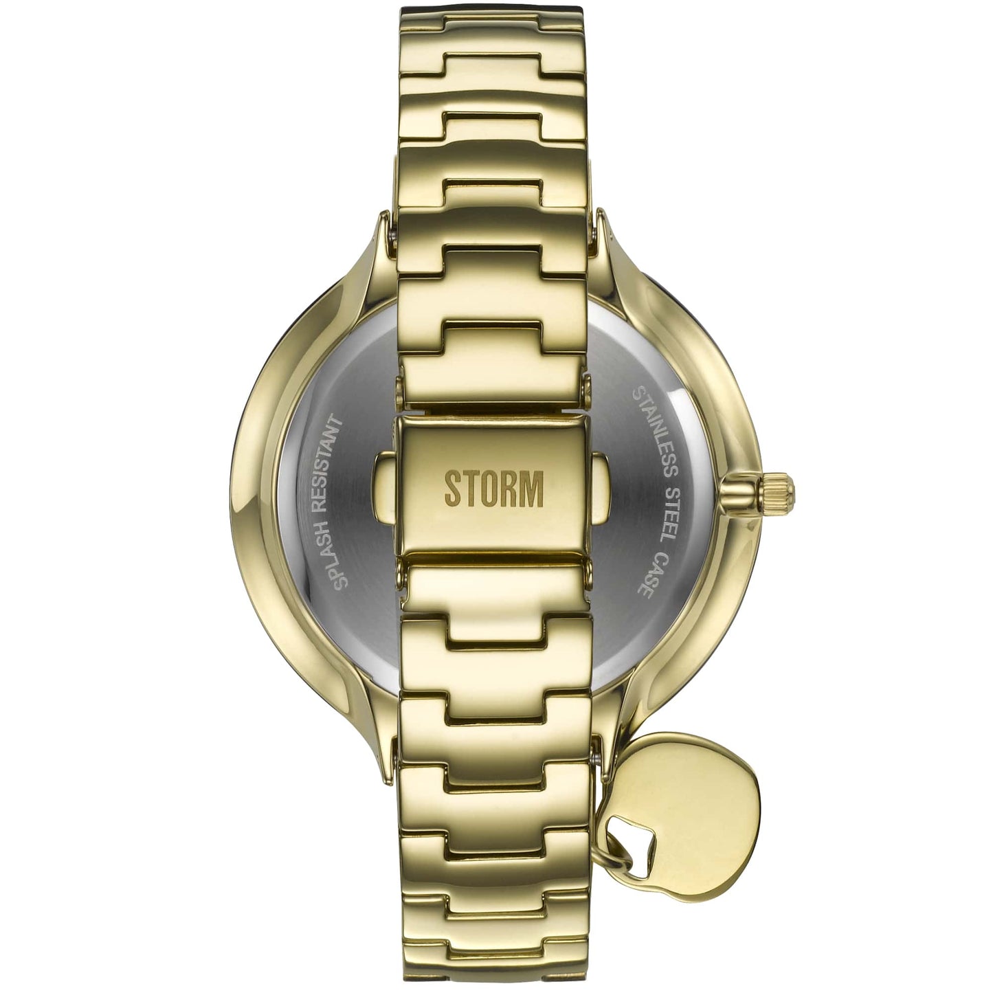 The STORM Liana is a statement ladies watch with an oversized edge to edge glass dial and a highly polished steel band. This slim timepiece has crystal number markers at 3, 6, 9 and 12 with a ring second hand on a sunray teal dial. The Liana is finished with a cute heart Charm accented with a single sparkling crystal.