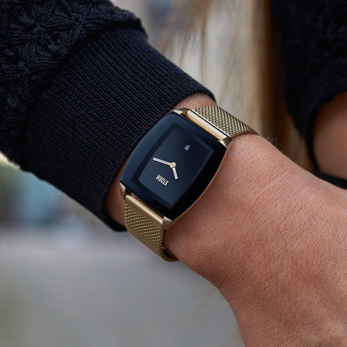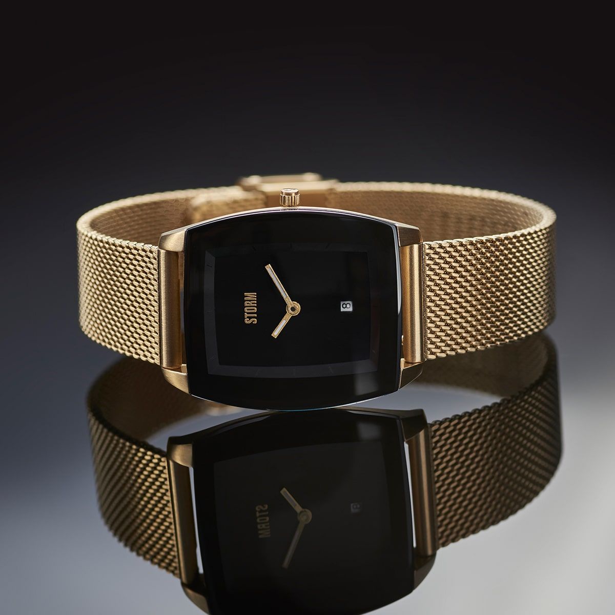 The STORM Mini Zaire is designed to take you from day to night. This petite watch sits on an easily adjustable gold mesh strap. The uniquely shaped face has an edge to edge black dial. In true STORM style, it's finished in brushed stainless steel making it the perfect accessory all year round.