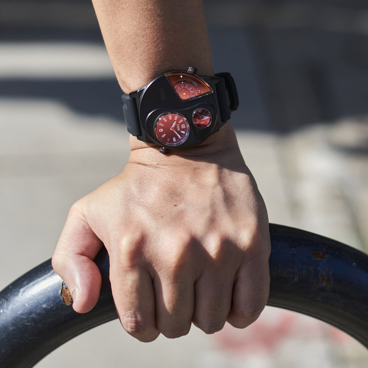 The Navitrek stands out with its rugged ion plated stainless steel construction and iconic STORM lazer red dial, complemented by a high-quality rubber strap. With luminous hour markers and hands that glow in the dark, you'll always be in command of time, day or night. This special edition also comes with an exclusive box and certificate, making it a true collector's item. Elevate your wrist game with the STORM Navitrek – where style meets functionality.