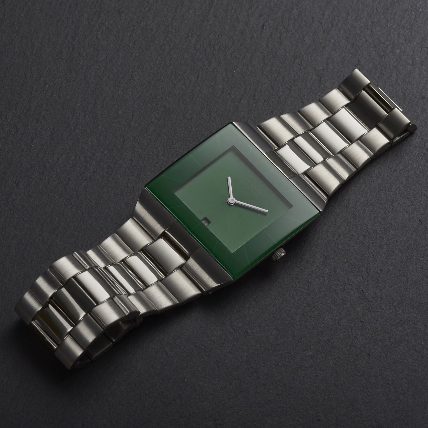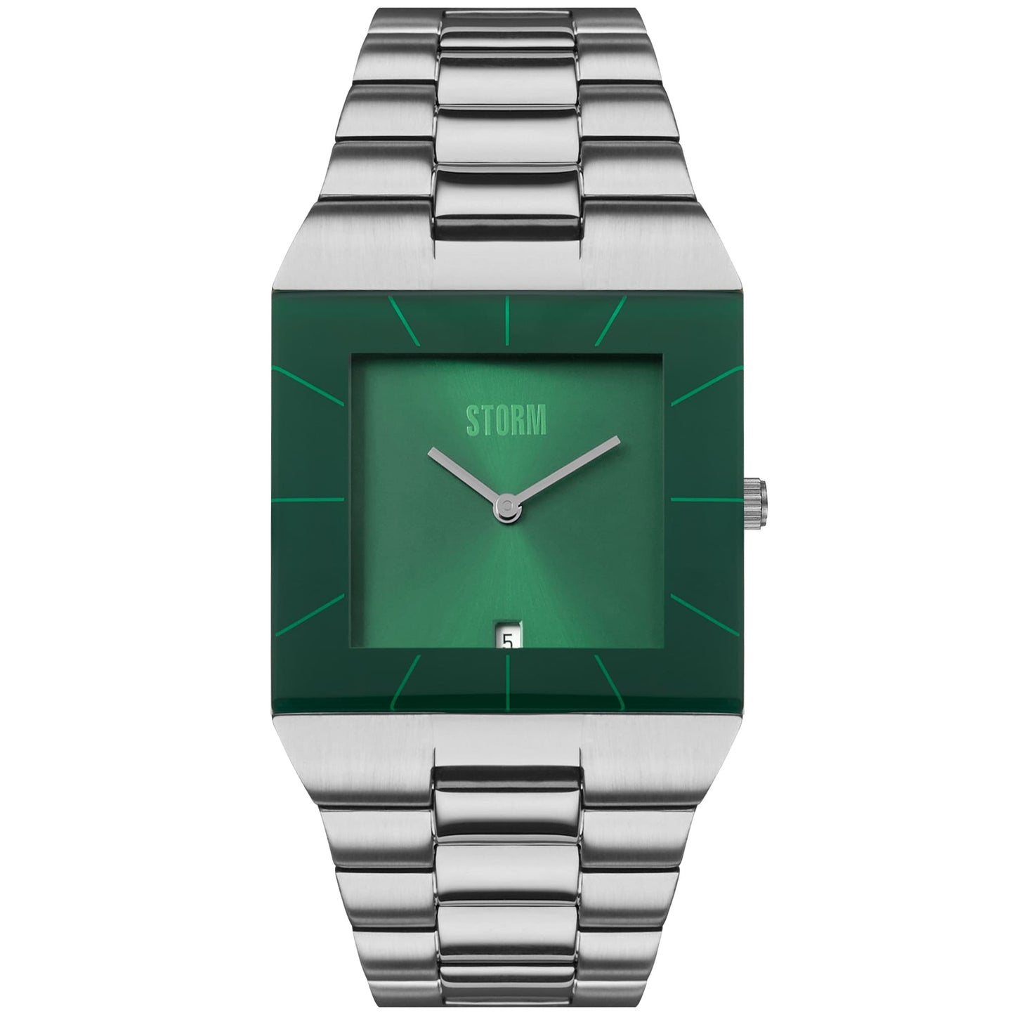 The STORM Omari Grand, inspired by the Omari XL but featuring a larger case for an even bolder look, is a smart and stylish timepiece, perfect for everyday wear. The slim case and strap are crafted from brushed stainless steel. The Omari Grand showcases a sleek, square green dial with a minimalist design and a date feature.