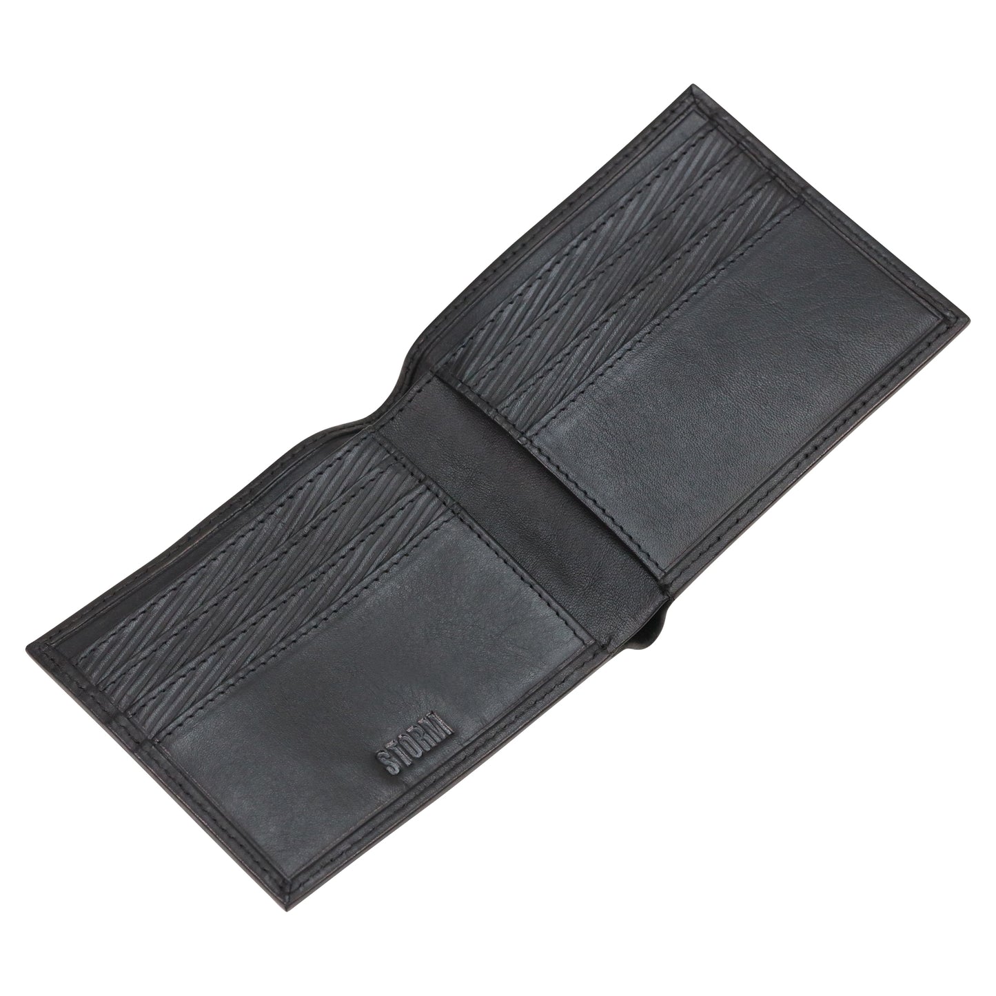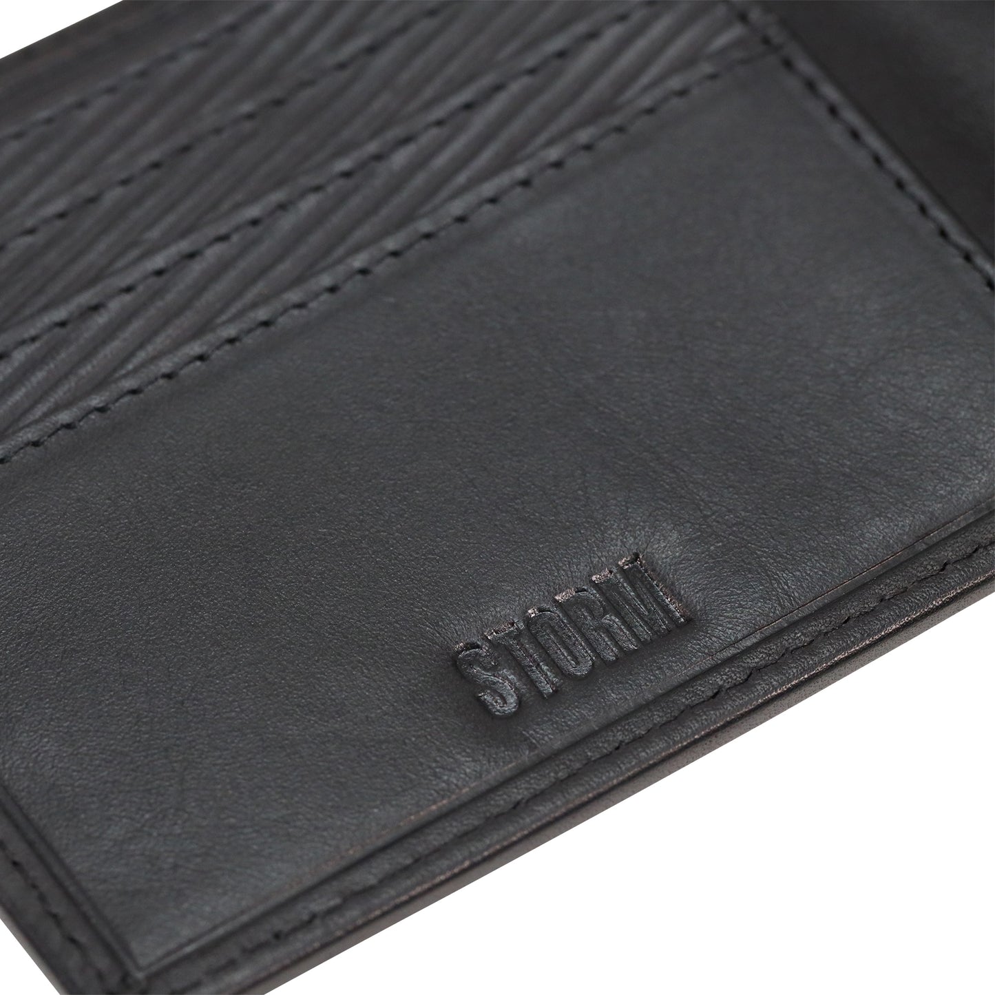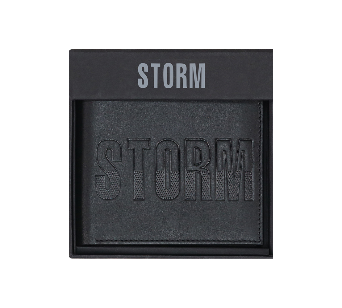 The STORM Plutus Storm Embossed Black Wallet exudes a sleek and modern sophistication. Crafted from smooth black leather, this wallet features oversized Storm embossed branding on the exterior, making a bold and stylish statement. Inside, you'll find carbon embossed card slots for added durability and texture, along with internal Storm embossed branding that reflects the wallet’s premium craftsmanship. Designed for the man who appreciates luxury and practicality, the STORM Plutus Wallet offers a timeless accessory that keeps your cards and cash organized in style.