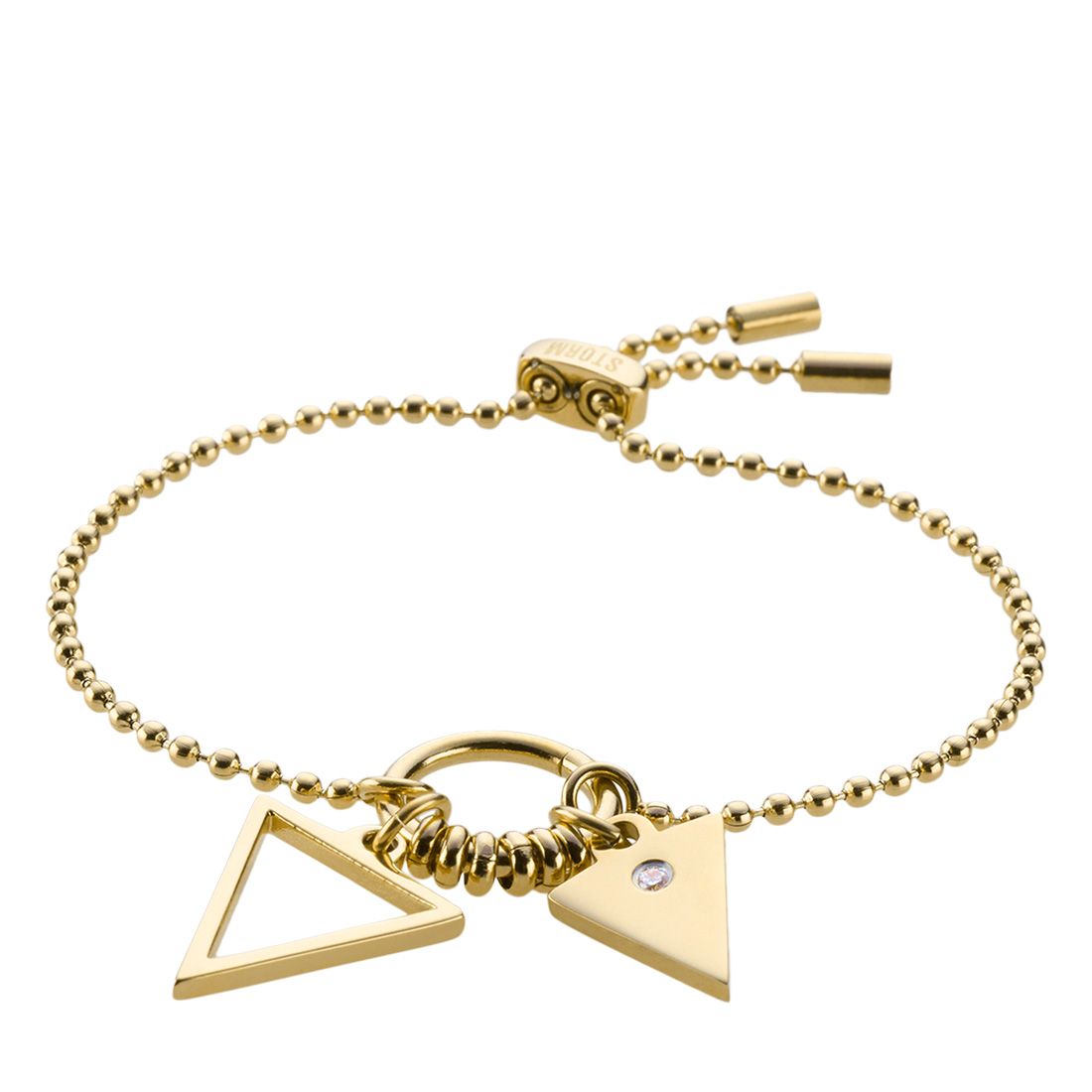 The STORM Rohaise bracelet features two geometric charms accented with a sparkling crystal on a beaded chain. The bracelet is made from 21 karat gold plated stainless steel and features a sliding bead which allows you to change the length of the necklace, giving you the option of wearing it long or short.