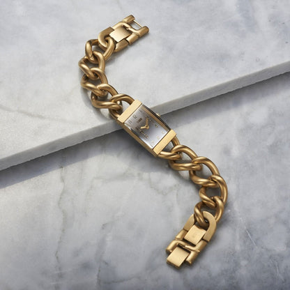 The STORM Sansa is an elegant bracelet watch with elevated curved glass sitting on a numbered dial. The Sansa is made from 21k gold plated brushed stainless steel and has EasiLink fastening meaning it can be easily self adjusted to fit your size.