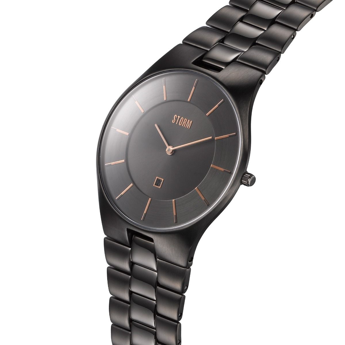The STORM Slim-X XL is a classic looking watch with a smart minimalist dial. The ultra slim strap is made from titanium ion plated stainless steel with a contrasting grey dial and rose gold number markers. The Slim-X XL is waterproof to 50m with a date feature.