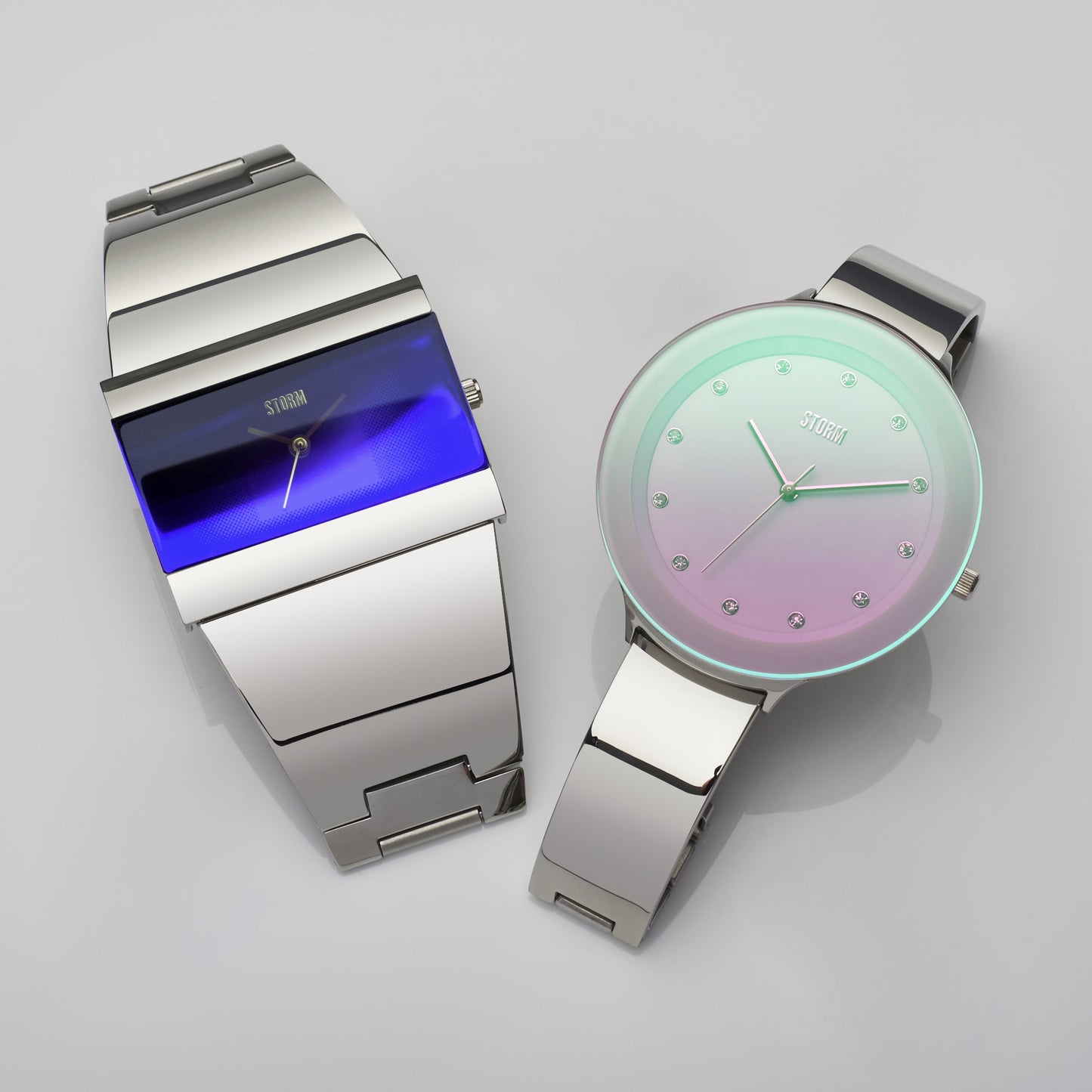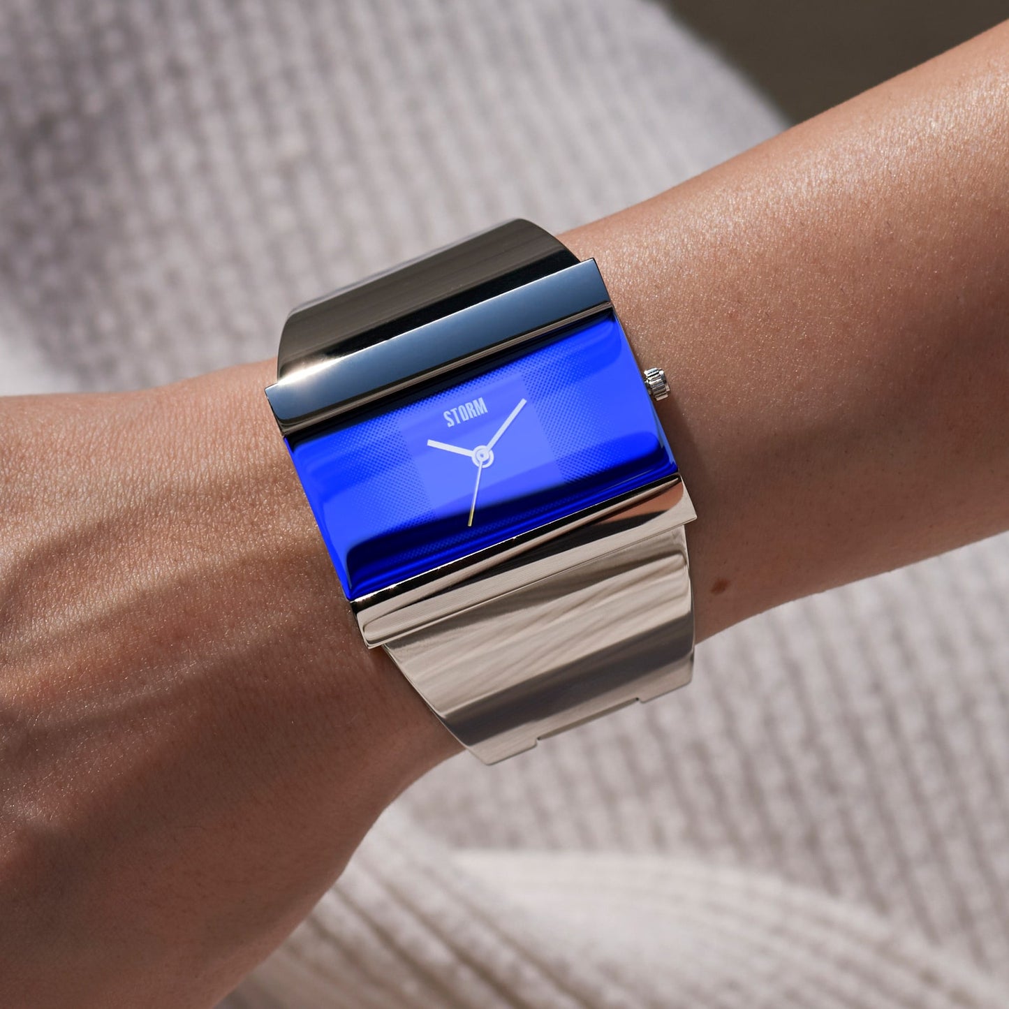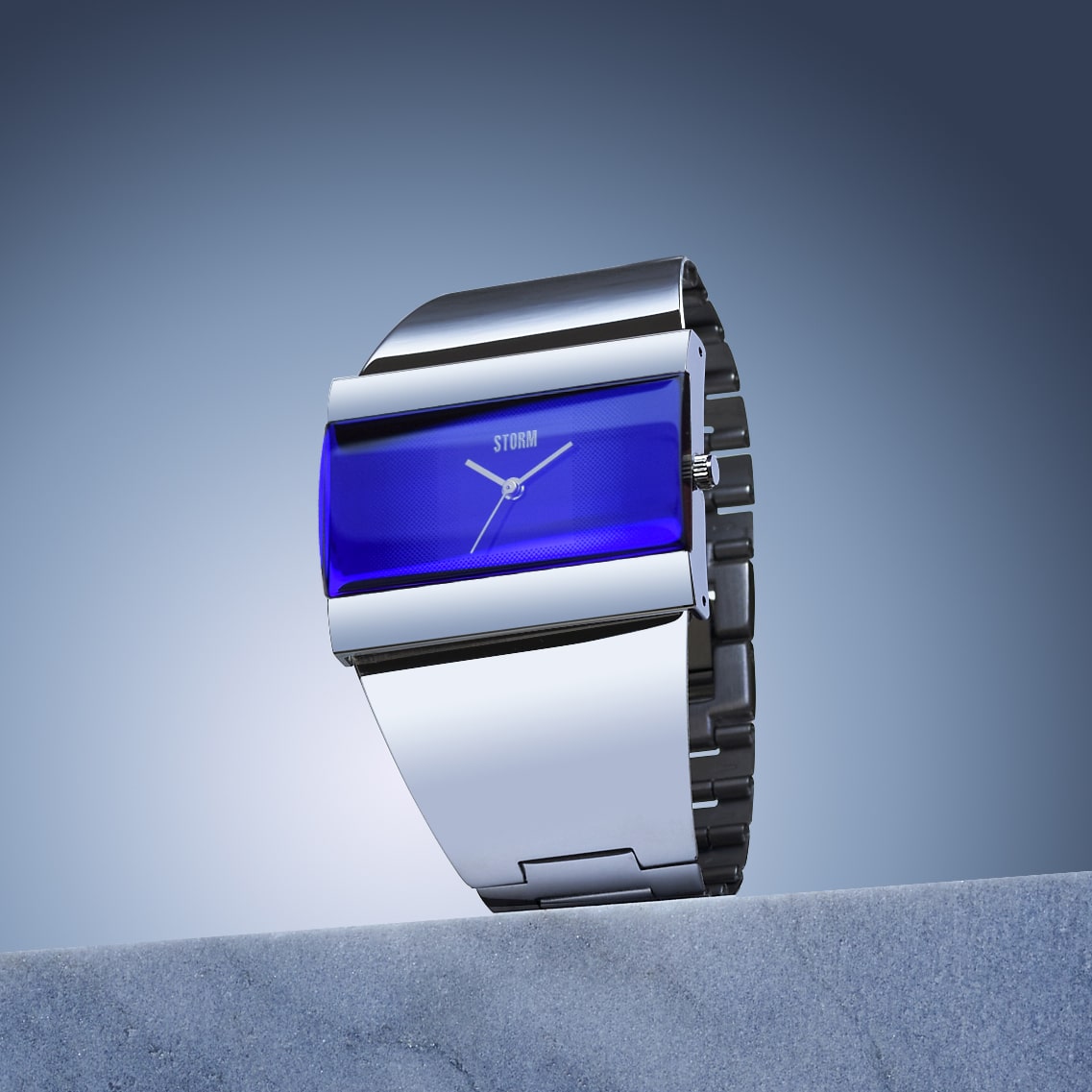 The STORM Starletti is a sleek watch with signature STORM style. The rectangular dial has STORM's signature lazer blue edge to edge glass and a smooth highly polished stainless steel strap which fits the wrist beautifully. * STORM's signature lazer blue glass is iridescent and may appear different shades of blue under different light.