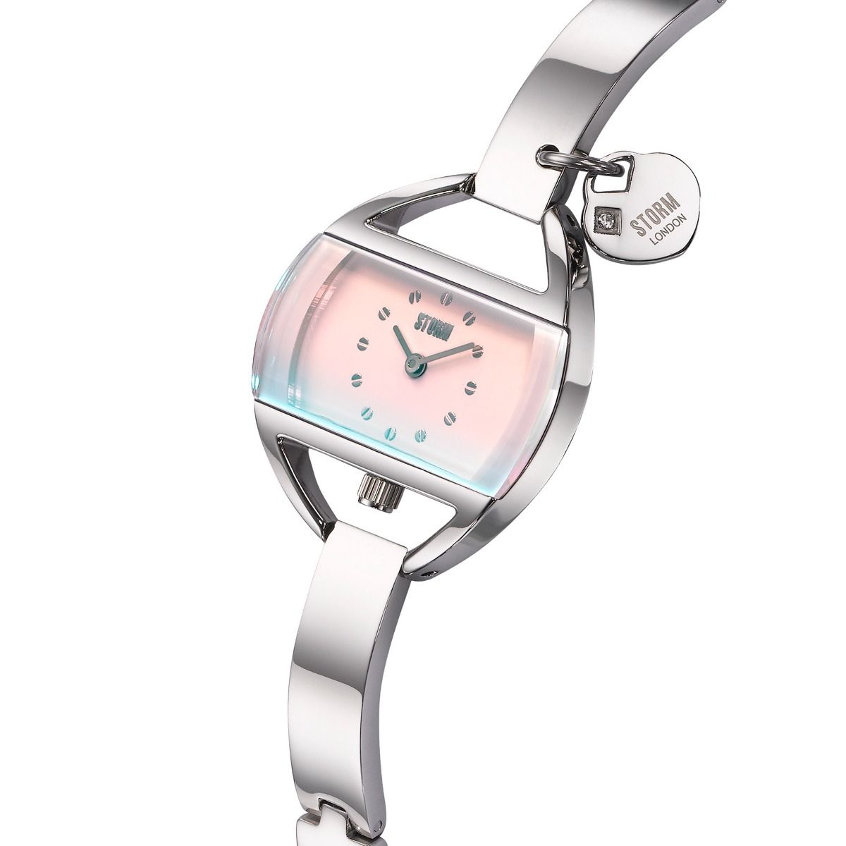 The STORM Temptress Charm is one of our best selling ladies watches. The watch is curved to fit neatly around your wrist with lazer pink glass dial and a cute heart charm, accented with a single crystal. The Temptress charm is made from polished stainless steel and has easilink fastening meaning it can be easily self adjusted to fit your size. Be unique! * STORM's signature lazer glass is iridescent and may appear different shades of blue under different light.