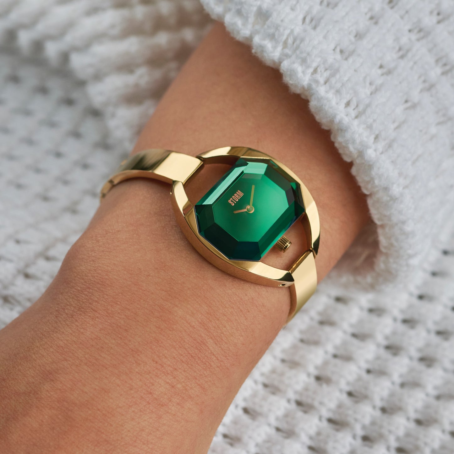 Step into the spotlight with the STORM Tulisa on your wrist. Its radiant green jewel face, crafted with a dazzling elevated cut-glass design, exudes sophistication and creates a captivating centerpiece for your wrist. Featuring an easilink fastening for effortless adjustment, it ensures a flawless fit every time. Wear it and let your individuality shine!