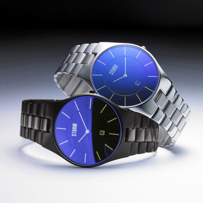 The STORM Slim-X XL is a classic looking watch with a smart minimalist dial. The ultra slim silver strap is made from highly polished stainless steel with a signature lazer blue dial. The Slim-X XL is waterproof to 50m with a date feature. STORM's signature lazer blue glass is iridescent and may appear different shades of blue under different light.